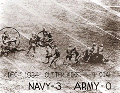 Slade Cutter, a 6’1”, 215-pound tackle with a strong leg and an even stronger will, etched his name into history that day. The only points scored in a 3-0 Navy victory came from his field goal—a play as improbable as the stormy beauty of that Saturday.
