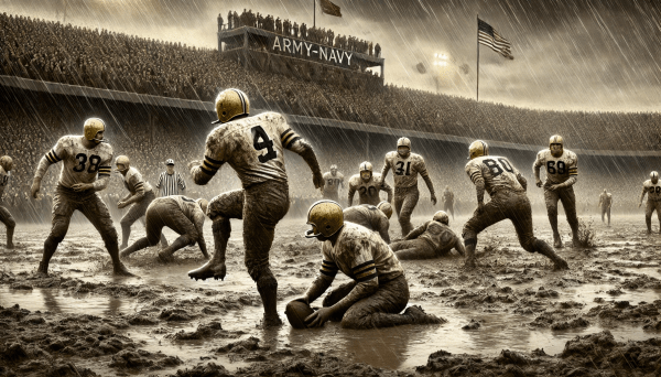 It was December 1, 1934, and the gray skies over Philadelphia matched the solemnity of a nation still clawing its way out of the Great Depression. Franklin Field buzzed with anticipation, hosting 78,000 fans in what was more than a football game—it was an institution. The Army-Navy Game, a yearly clash of grit and pride, captured the imagination of America. But in 1934, it wasn’t just the game; it was the weather, the mud, and one man’s extraordinary kick that turned the spectacle into legend. Continue reading “Slade 3, Army 0”