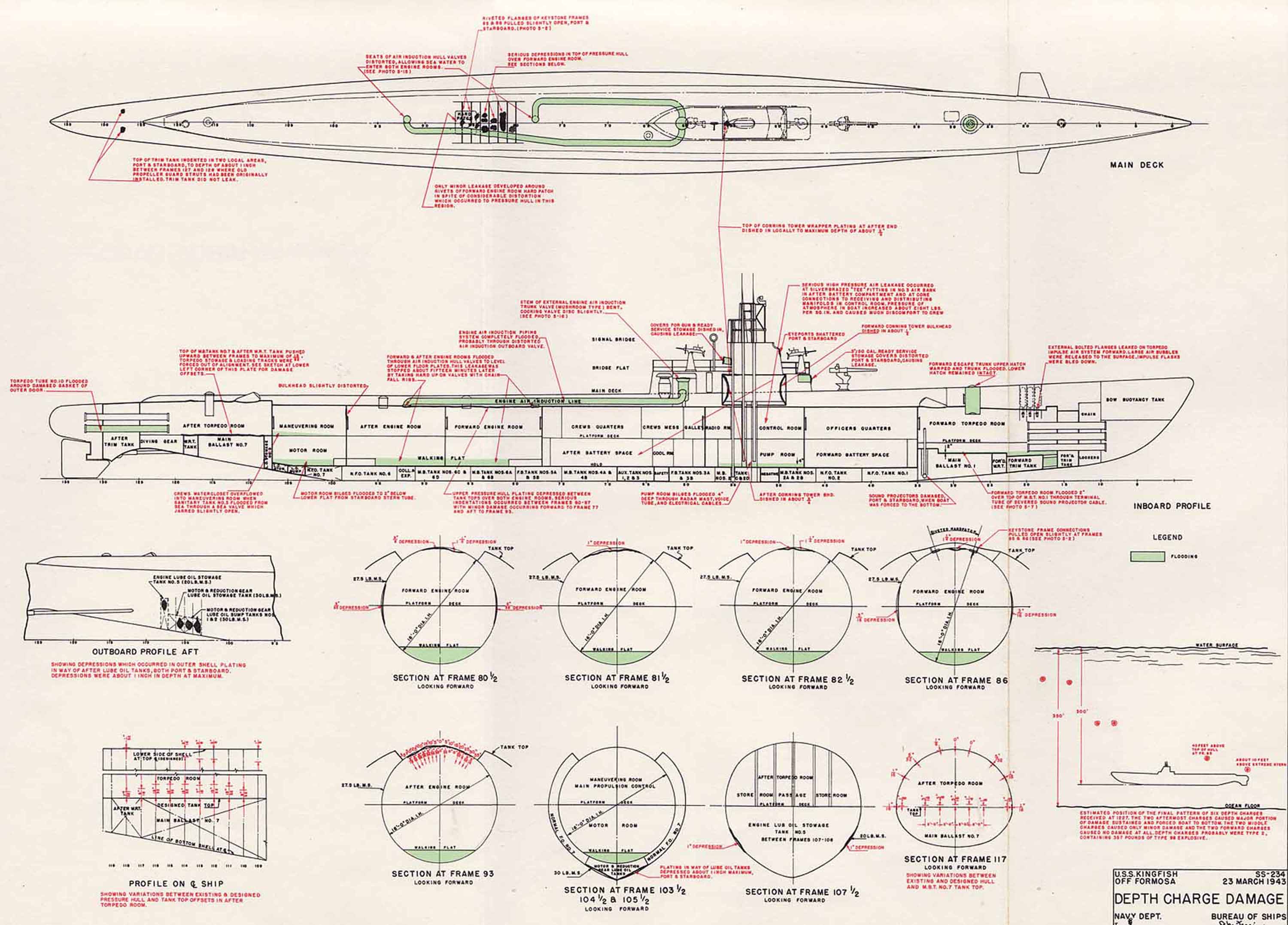 Kingfish ran. She pushed her four diesel engines to flank speed and raced out of the area, a wounded beast limping through the waves. By 8:00 PM, she began to recharge her batteries. By 10:00 PM, her bilges were dry. The next morning, she dove again, still leaking, still damaged, but alive.