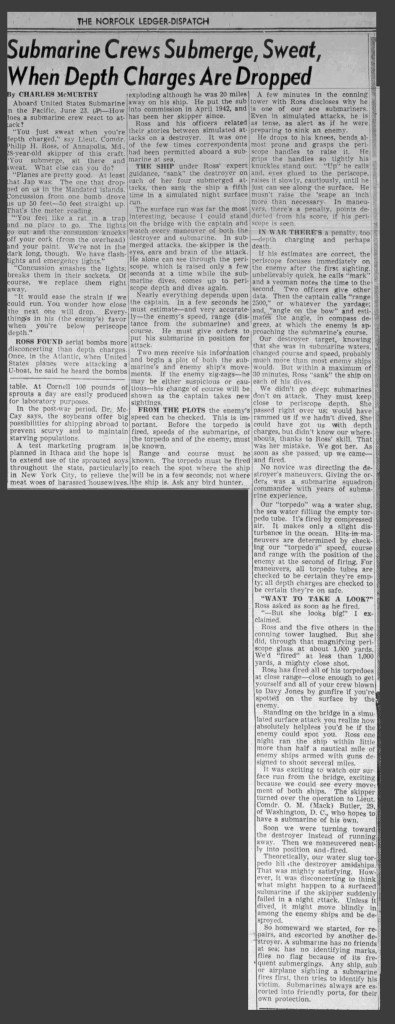 On June 23, 1943, the Norfolk Ledger-Star published a rare look into one of the most secretive corners of the American war effort. Titled “Submarine Crews Submerge, Sweat, When Depth Charges Are Dropped,” the article gave readers at home a dramatic, carefully curated peek into life aboard a U.S. Navy submarine during World War II. For a service built entirely on secrecy, it was a surprising choice.