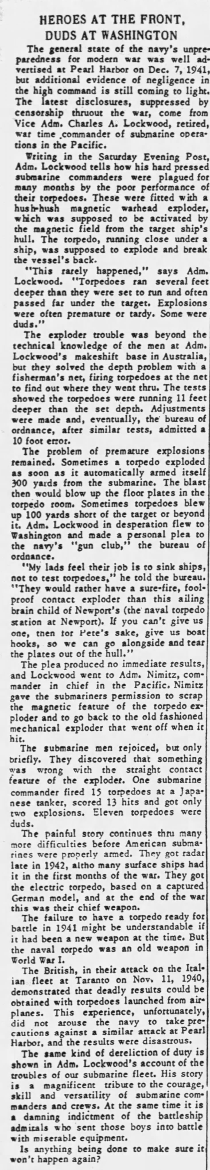 Sunil Parmar. “The Great Torpedo Scandal 1941–43.” Naval Submarine League Archive, September 29, 2021. https://archive.navalsubleague.org/1996/the-great-torpedo-scaodal-1941-43