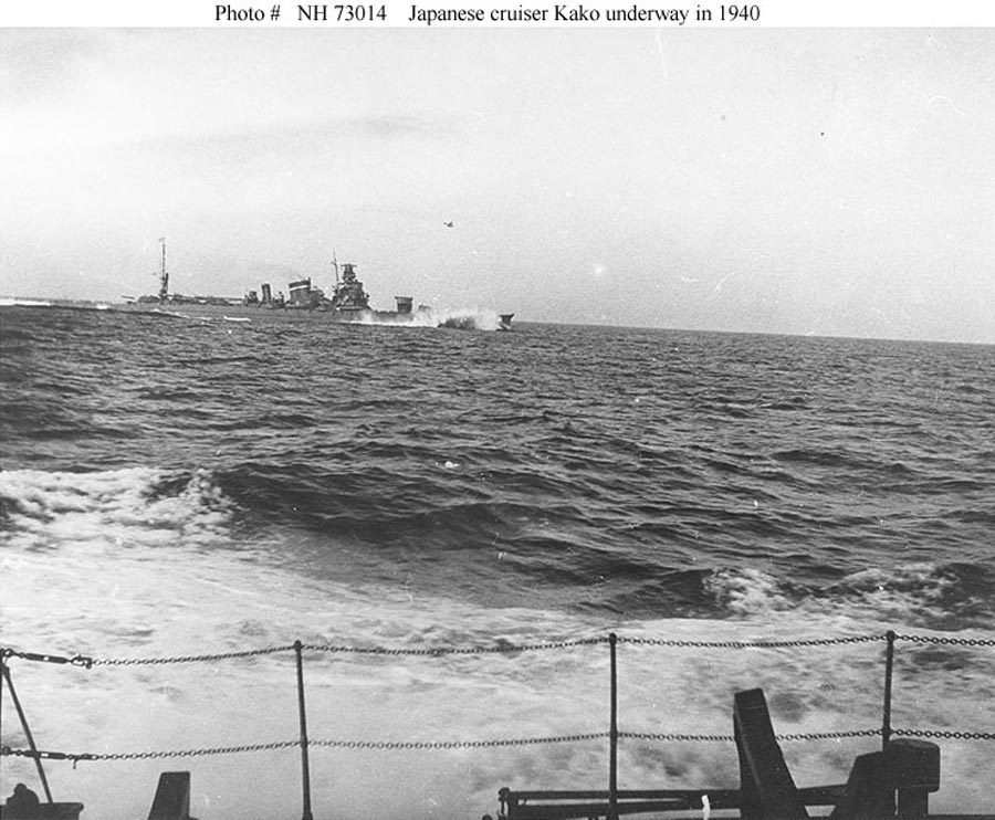 The Japanese formation was under 900 yards off. Close enough that every shot had to count. Moore made his call: target the last ship in the rear column—Kako, a Furutaka‑class heavy cruiser of around 7,100 tons. She had served at Pearl Harbor, the Java Sea, and Coral Sea. Captain Takahashi Ban, her commander, would have been proud of her record—usually coming home intact. Today, he never saw the danger coming.