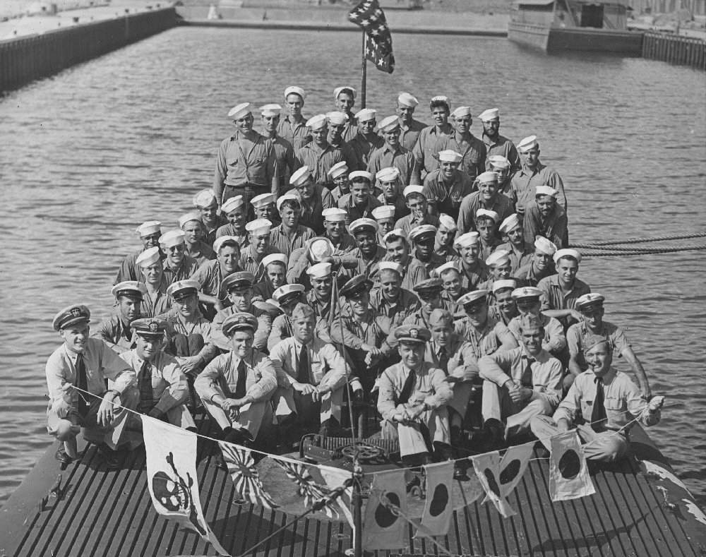Today, the name Gurnard is still remembered in Navy lists, though the boat herself is long gone. Her battle flag, festooned with silhouettes of ships, told the story in stitched images. Her place in history is secure. Commissioned in September 1942, she lived through the crucible of the Pacific, contributed to the strangling of Japanese commerce, and came home. Few can ask for more from a fighting ship.